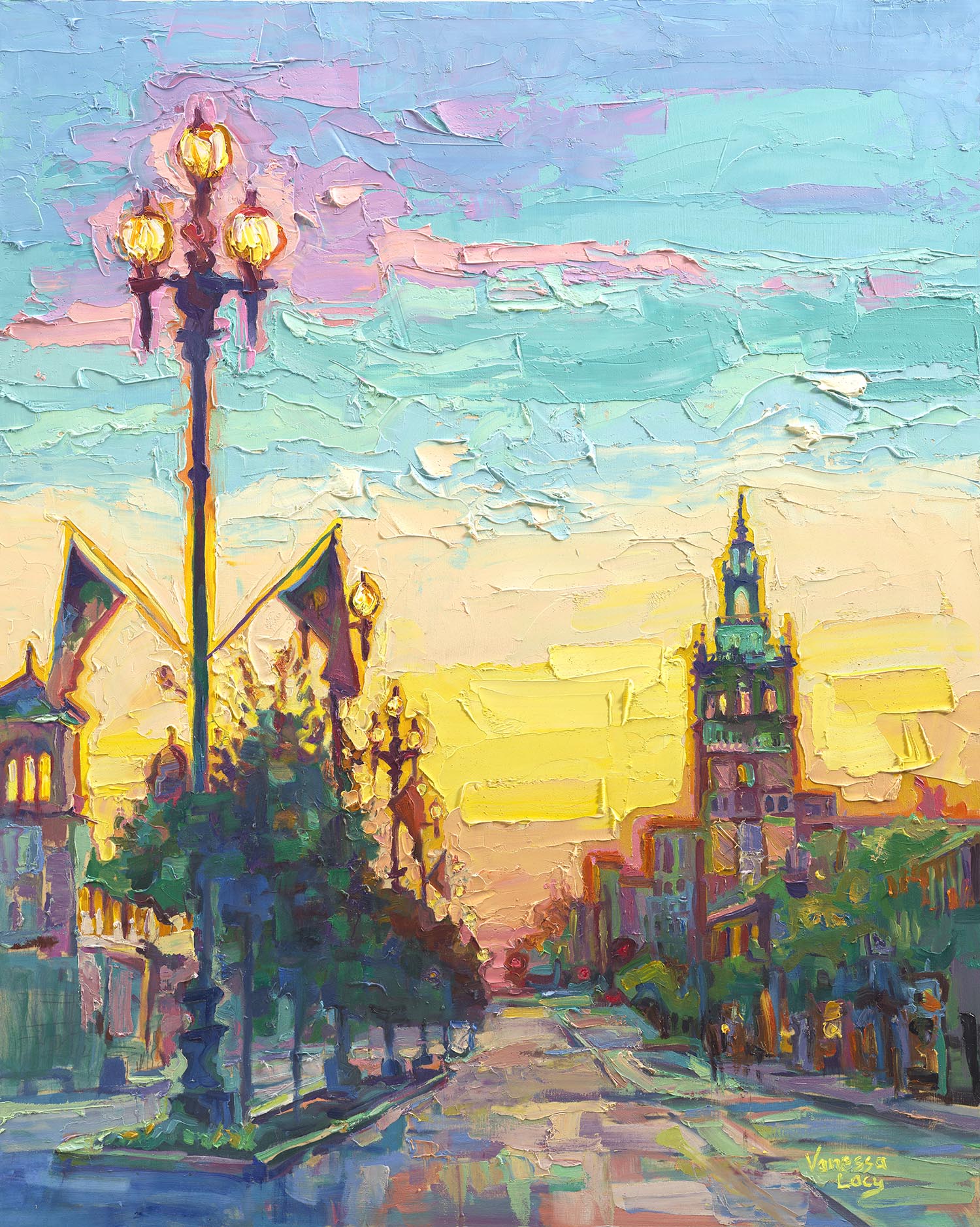 "Plaza Lamppost" Original Oil Painting by Vanessa Lacy